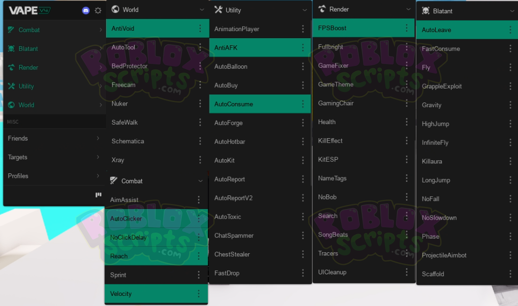 loadstring(game:HttpGet("https://raw.githubusercontent.com/7GrandDadPGN/VapeV4ForRoblox/main/NewMainScript.lua", true))()